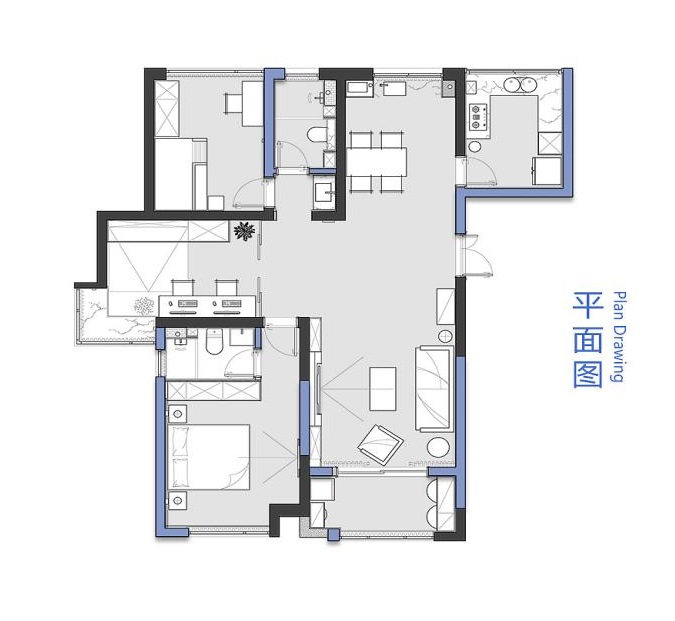 那一抹藍-杭州公館-現(xiàn)代風格設(shè)計-裝修效果圖